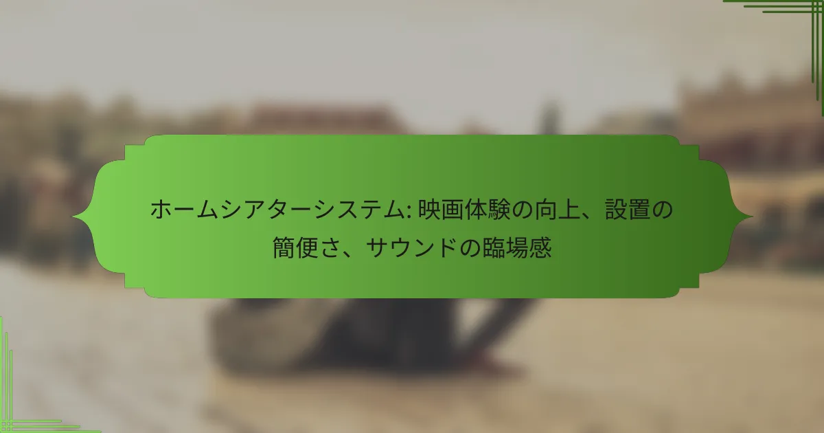 ホームシアターシステムは、家庭で映画館のような視聴体験を提供するための音響および映像機器のセットです。これにより、映画や音楽をより臨場感あふれる形で楽しむことができます。設置が簡便であれば、手軽に高品質なサウンド環境を整え、映画体験を大幅に向上させることが可能です。